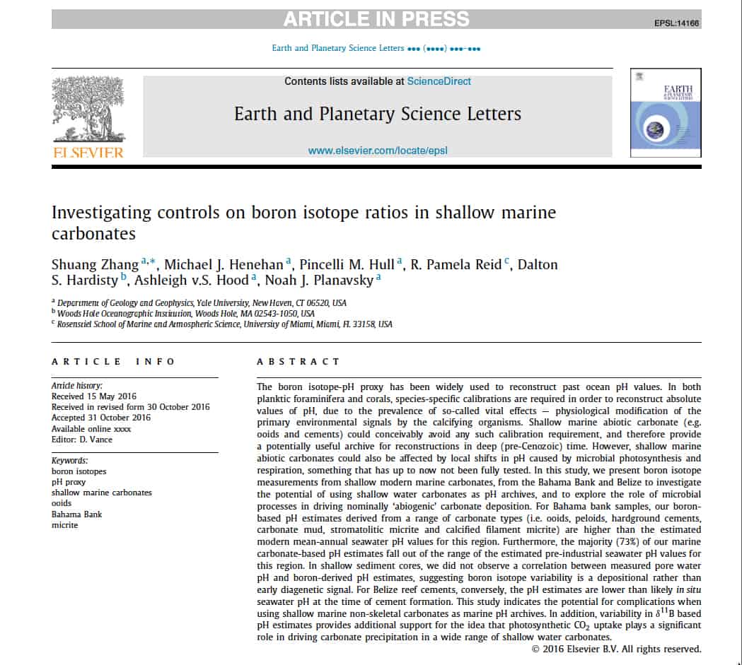 Boron Isotopes in Shallow Marine Carbonates, Nov 2016