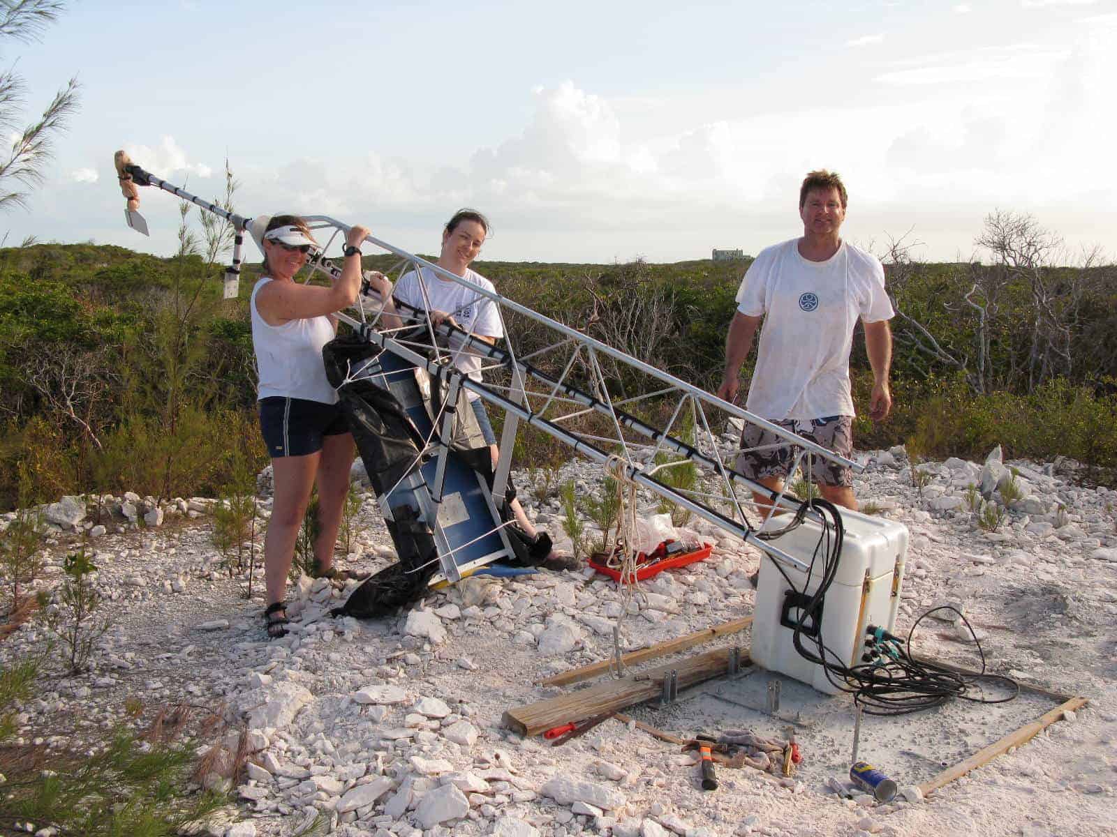 Thanks to Sean Norman, Craig Grossenbacher, and Jamie Foster for assistance in setting up the solar powered weather station we moved to Darby from Highborne Cay. This will provide continuity to the existing four years of weather data collected at Highborne.