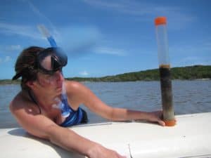 After the departure of the Discovery Science film crew, there was time for some science with Amanda Oehlert, the soon-to-be BME post doc. Amanda has been awarded a fellowship from Agouron Institute, and will begin her work as a post doc with Bahamas Marine EcoCentre in January 2017. We took advantage of her trip to Darby for the filming to collect samples in the salt ponds and stromatolites! Amanda’s work will focus on rare earth elements in microbial deposits of the Bahamas and Shark Bay.